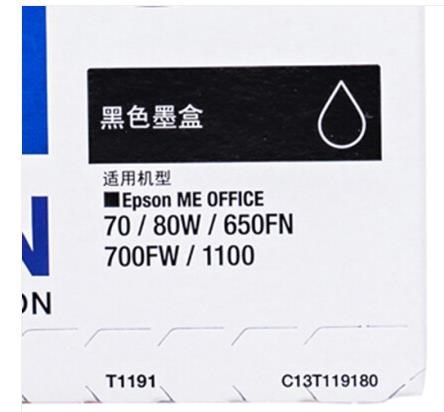 • 商品名称:爱普生(Epson)T1191 大容量黑色墨盒 C13T119180(适用650FN/70/1100)