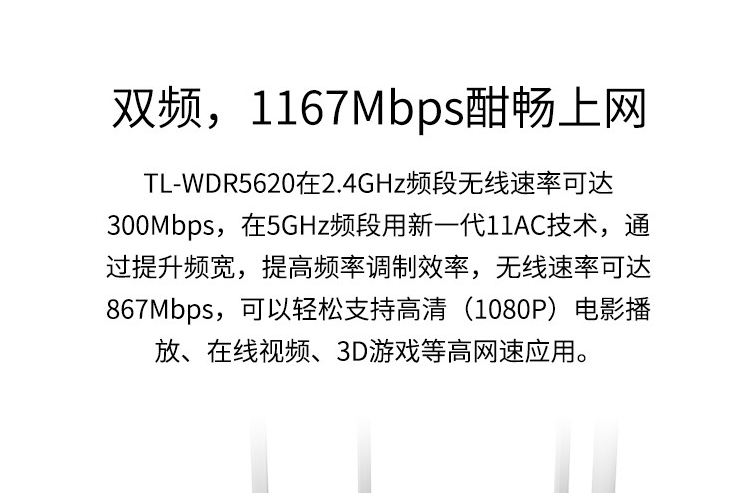 • 商品名称:TP-LINK TL-WDR5620 1200M 5G双频智能无线路由器