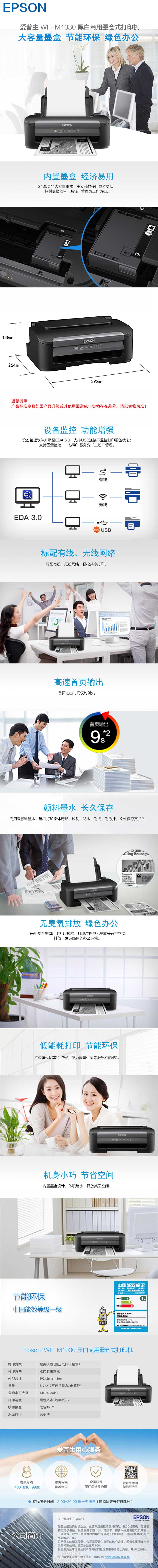 • 商品名称:爱普生(EPSON)WF-M1030 有线网络小型办公商用墨仓式打印机