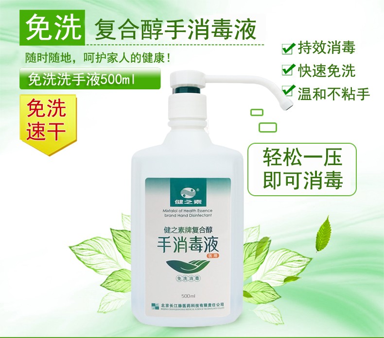 • 商品名称:健之素复合醇家用儿童免洗洗手液便携式宝宝杀菌速干消毒液500ml