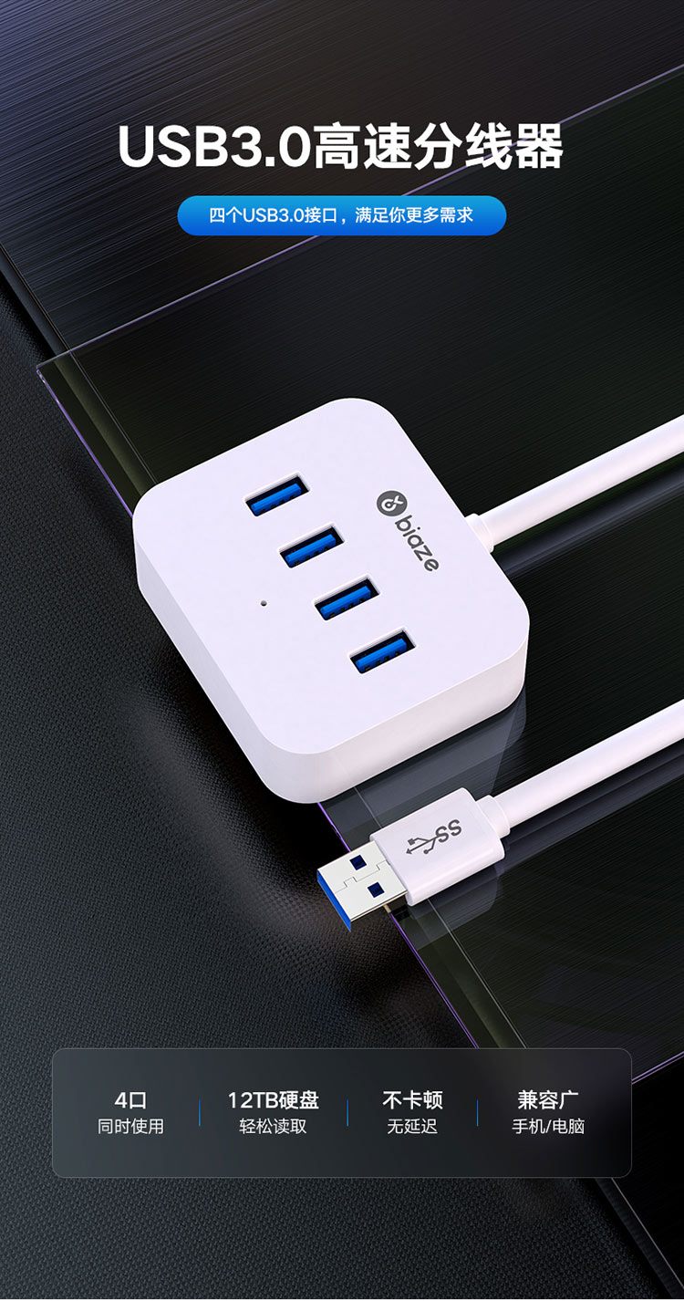 • 商品名称:USB3.0分线器 带电源接口 3.0高速4口HUB 多接口扩展转换器