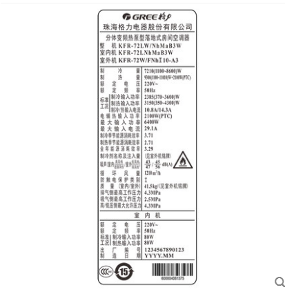 • 商品名称:Gree/格力 KFR-72LW/NhMaB3W 3匹智能冷暖变频客厅空调立式柜机