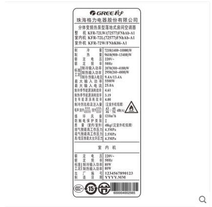• 商品名称:Gree/格力 KFR-72LW/(72577)FNhAb-A1一级能效智能变频冷暖空调