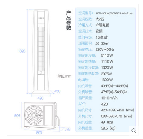 • 商品名称:Gree/格力 KFR-50LW/(50578)FNhAd-A1(a)大2匹变频冷暖智能空调