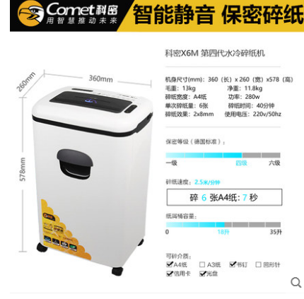 • 商品名称:科密X6M 水冷碎纸机办公大功率快速静音节能自动变频碎纸机