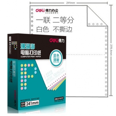 • 商品名称:得力(deli)白色电脑打印纸S241-1-1/2一联二等份整张不撕边(色序:全白 800页/箱)