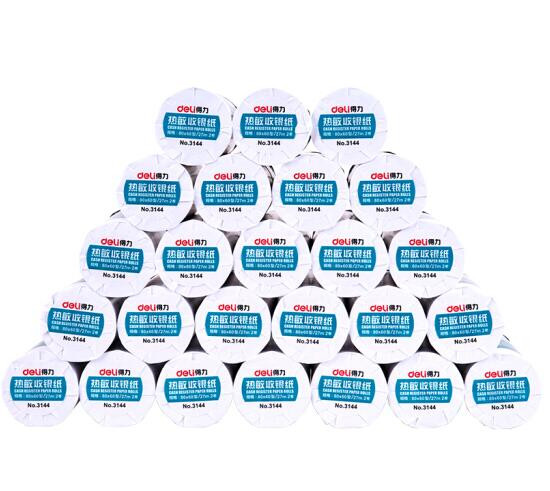 得力(deli)80mm*60mm热敏收银纸/收银机打印纸/超市小票打印纸 27米/卷 50卷/箱 3144