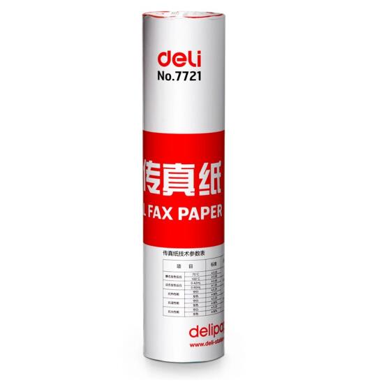 • 商品名称:得力(deli)210mm*30m 55g热敏传真纸 单卷装7721